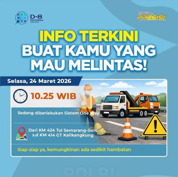 Skema one way nasional akan diberlakukan pada 24 Maret sebagai puncak arus balik, dengan distribusi kendaraan diperkirakan 66% menuju Trans Jawa dan 33% ke Jawa Barat.