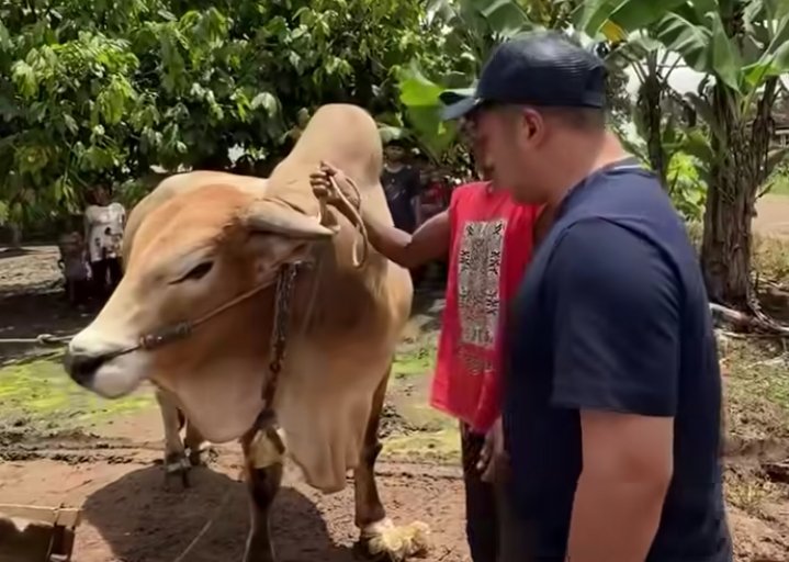 Sapi yang ditaksir beratnya mencapai 700- 800 kg itu diikhlaskan Pak Dhe untuk dibawa pulang Irfan Hakim dengan bayaran yang tidak disebut dalam video itu.